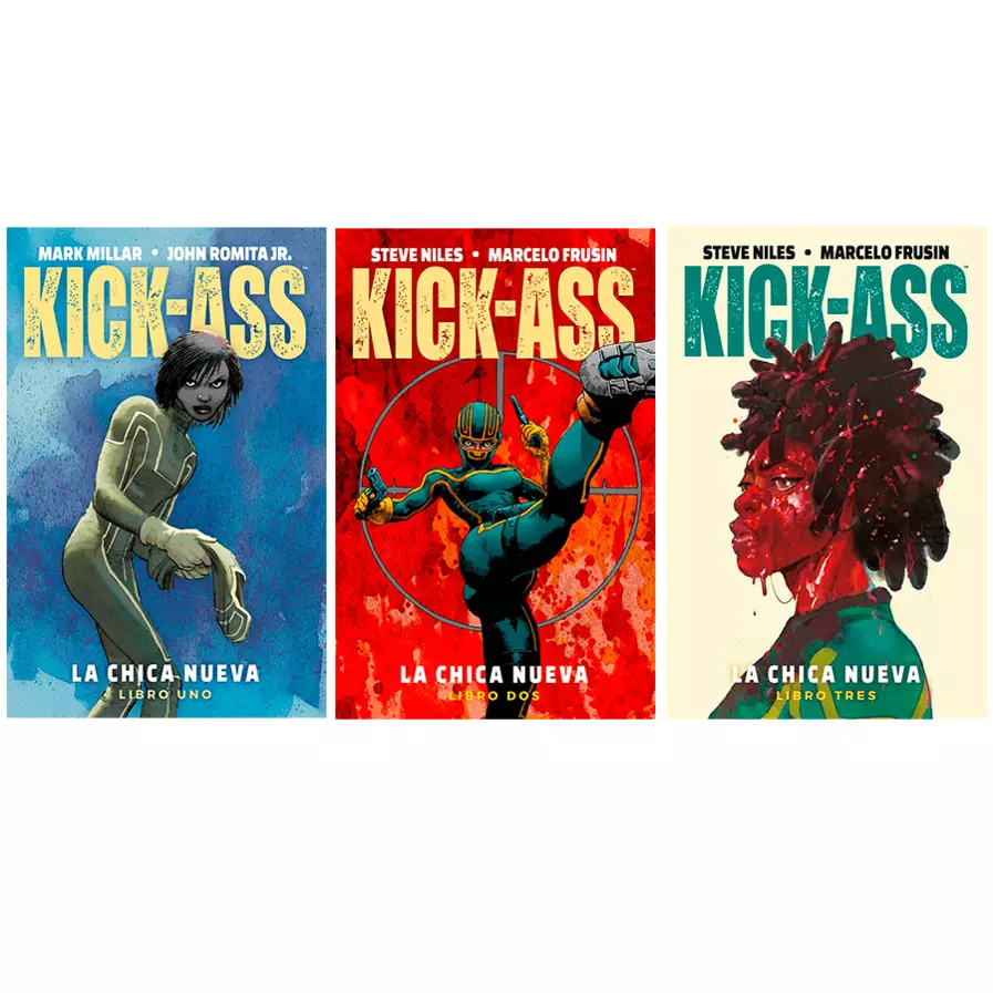 Kick Ass The New Girl #1¡Kick-Ass ha vuelto y ahora vigila las calles, preparada para acabar con los peores criminales de Nuevo México! Pero hay un nuevo rostro tras la máscara: una soldado que regresa de los horrores de la guerra solo para encontrar una nueva batalla en las calles de su ciudad. Las leyendas del mundo del cómic, Mark Millar y John Romita Jr., se reúnen en el capítulo más reciente del más extraordinario cómic de superhéroes de la historia.Kick-Ass La chica nueva #2La fama de la nueva Kick-Ass va en ascenso entre grupos criminales... pero también la lista de enemigos aumenta y uno antiguo pretende cobrar venganza. En tanto, Patience sigue lidiando con los problemas propios de una estudiante universitaria y madre soltera con salario de mesera. Pero algo amenaza con revelar su identidad.Kick-Ass La chica nueva #3Con un imperio criminal y bolsas de dinero ensangrentado al alcance de su mano, la misión de Patience para salvar a su viejo vecindario se está saliendo de sus manos: debe mantener un control firme sobre los gánsteres de Albuquerque, equilibrar el trabajo y la universidad, y proteger a su familia. Ahora, nuevas amenazas emergen desde fuera de la ciudad: los rusos controlan laboratorios de metanfetaminas por todo el lugar, y los cárteles mexicanos se acercan a sus operaciones. Además, una asesina es enviada para acabar con ella y destruir a su pandilla de vigilantes de una vez por todas.